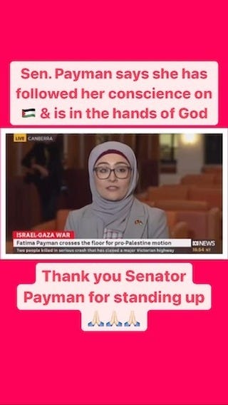 Speaking outside the Senate chamber after the vote, Payman said she was “proud of what I did today”.