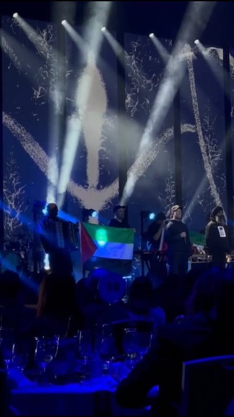 Elefant Traks’ performance at the awards incorporated expressions of solidarity with Palestinians. Levinson wore a keffiyeh onstage, and the label’s artists read out a poem written by a Palestinian woman who had to pull out of performing onstage due to fears of backlash from her employer.