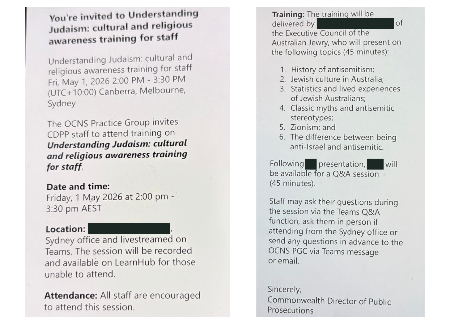 CDPP’s cultural and religious awareness training, steered by a pro-Israel group that endorses the IHRA definition, fits within the context of the Labor government implementing Segal’s plan.