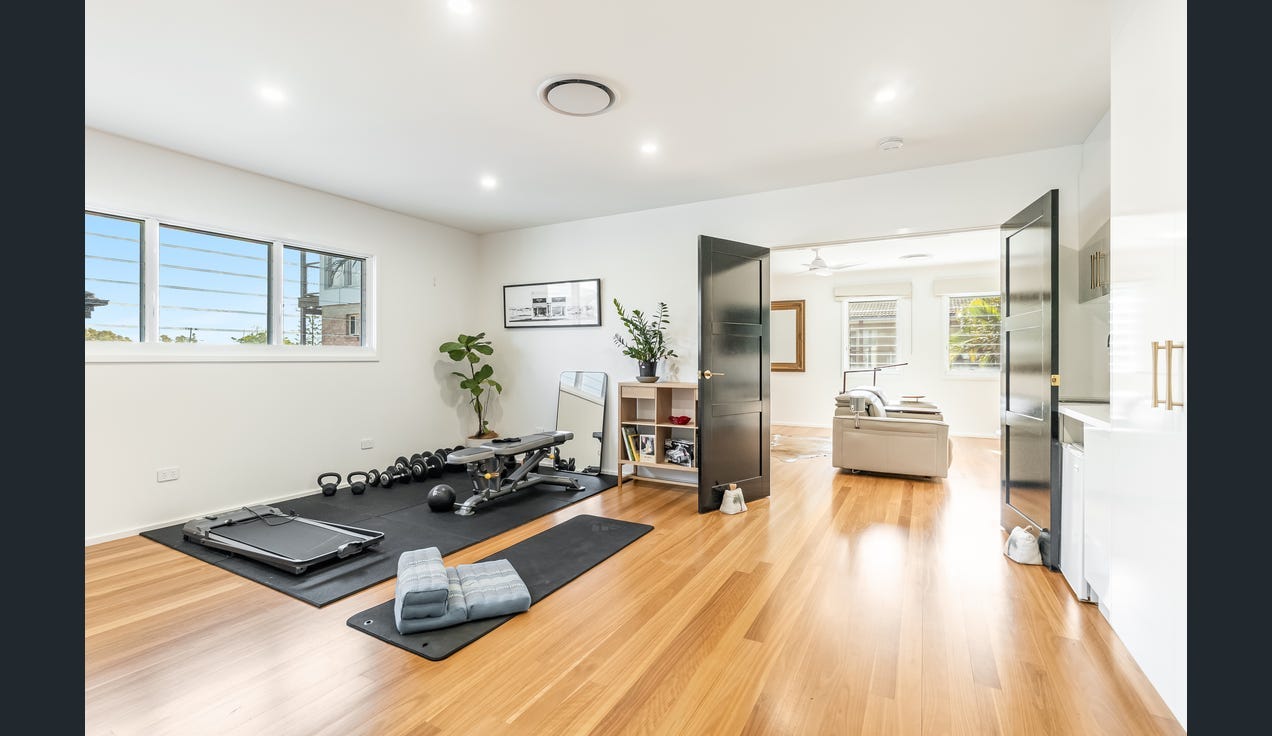 The large home – only a seven-minute stroll to the beach – boasts two bathrooms, two car spaces, an enormous walk-in-robe, an exercise room and a wine cellar, according to images published on realestate.com.au.