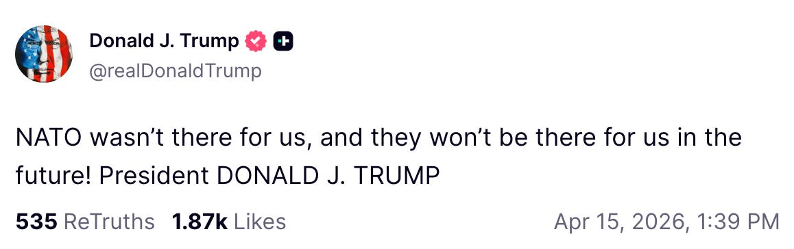 But there was no stating the obvious for Trump. His chosen scapegoat, it seems, are the Europeans for refusing to help him in a war he started and could not win.