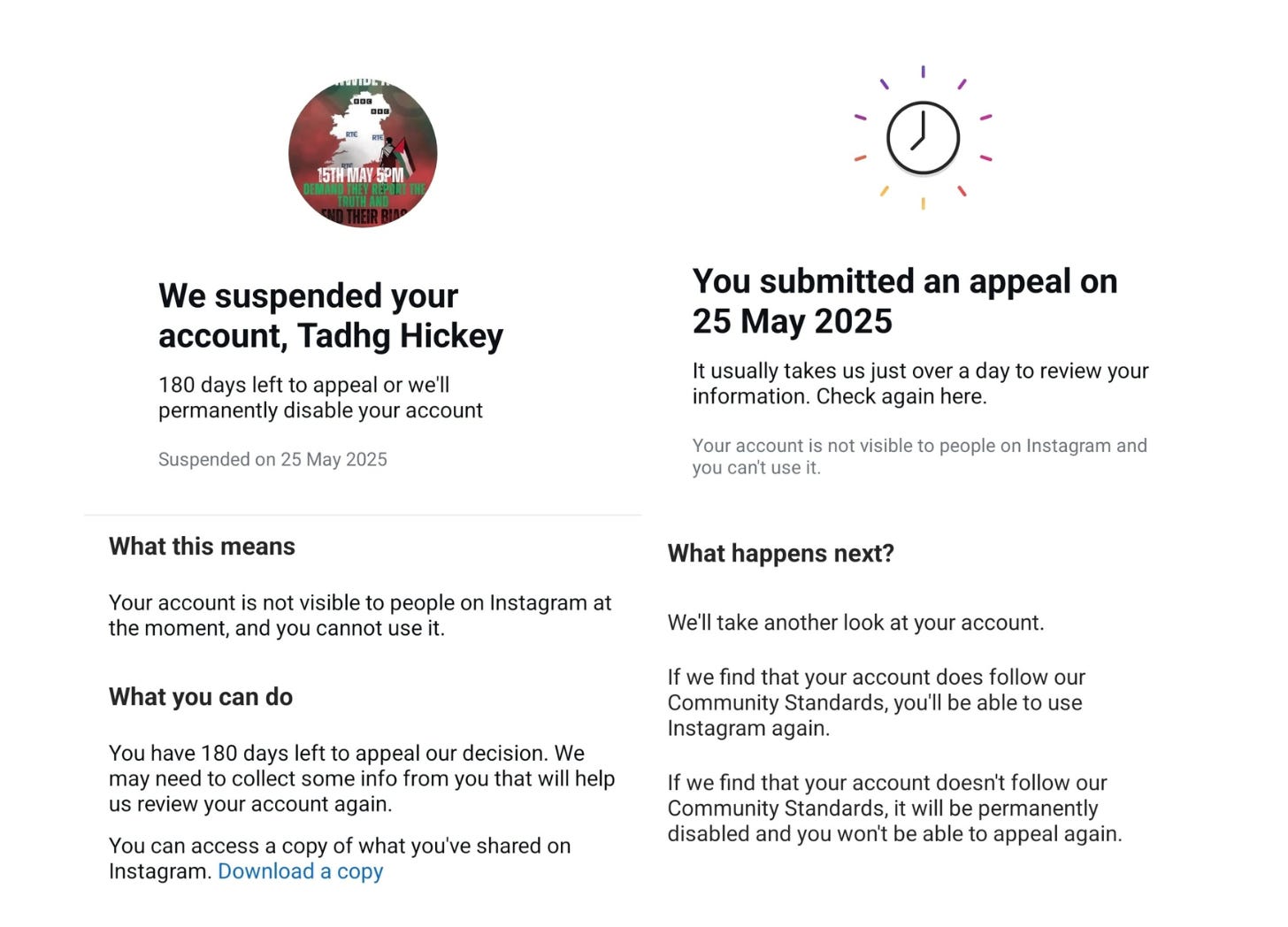 'Oligarchs rule the world': Tadhg Hickey responds to Instagram ban over Gaza posts