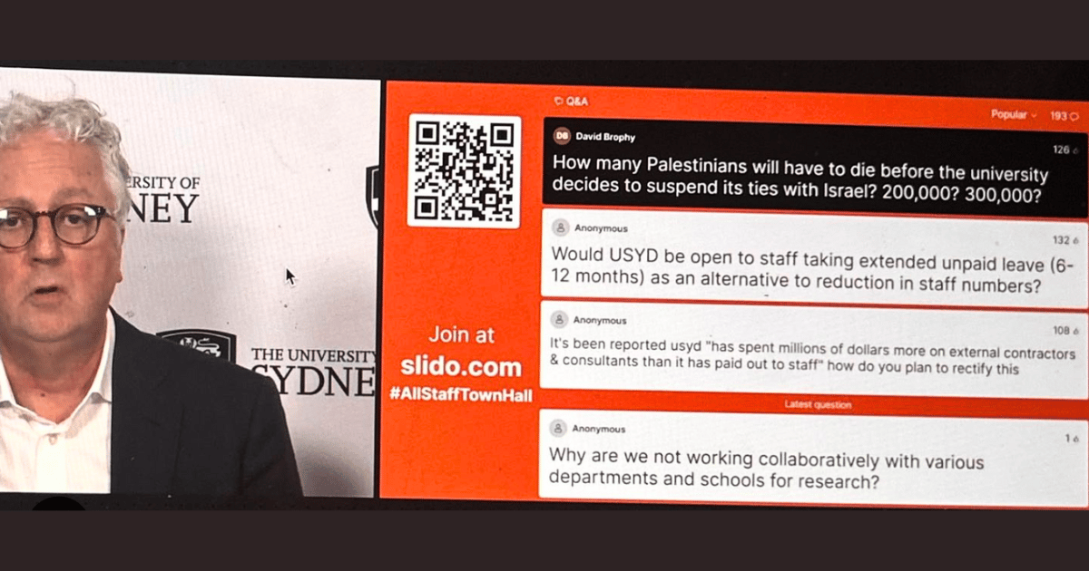 All this happened a week before University of Sydney vice-chancellor Mark Scott hosted a town hall meeting for University staff, proving that there are still skerricks of justice in the world for those with eyes to see.