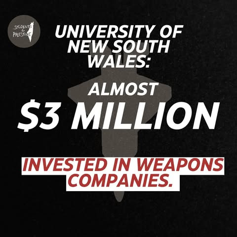 “If you’ve ever been to UNSW, you’ll have seen lots of monuments and statues to past figures of the anti-apartheid movement, independence movements against colonialism and so on. They’re littered around our campus,” Tyers says. “Meanwhile, they have millions of dollars invested in weapons companies that are arming the genocide in Gaza and cracking down on protests against it on campus. An FOI request we filed earlier this year revealed that UNSW has $2.97 million invested in weapons companies. We need to call out the hypocrisy that this uni is filled to the brim with.”