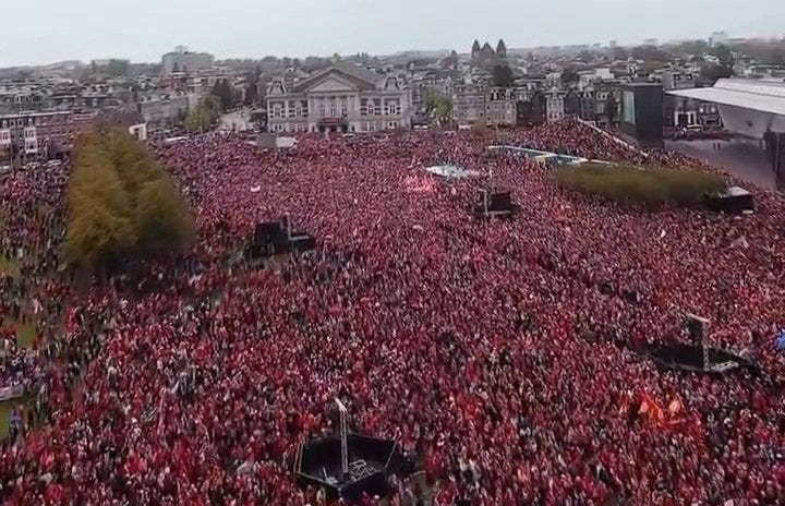 Two years into the genocide, there are no signs the protest movement in western cities is losing steam. More than 250,000 protesters turned out in Amsterdam this week, dressed in red. Italy, meanwhile, is facing a near-popular revolt that appears to be only gaining momentum.